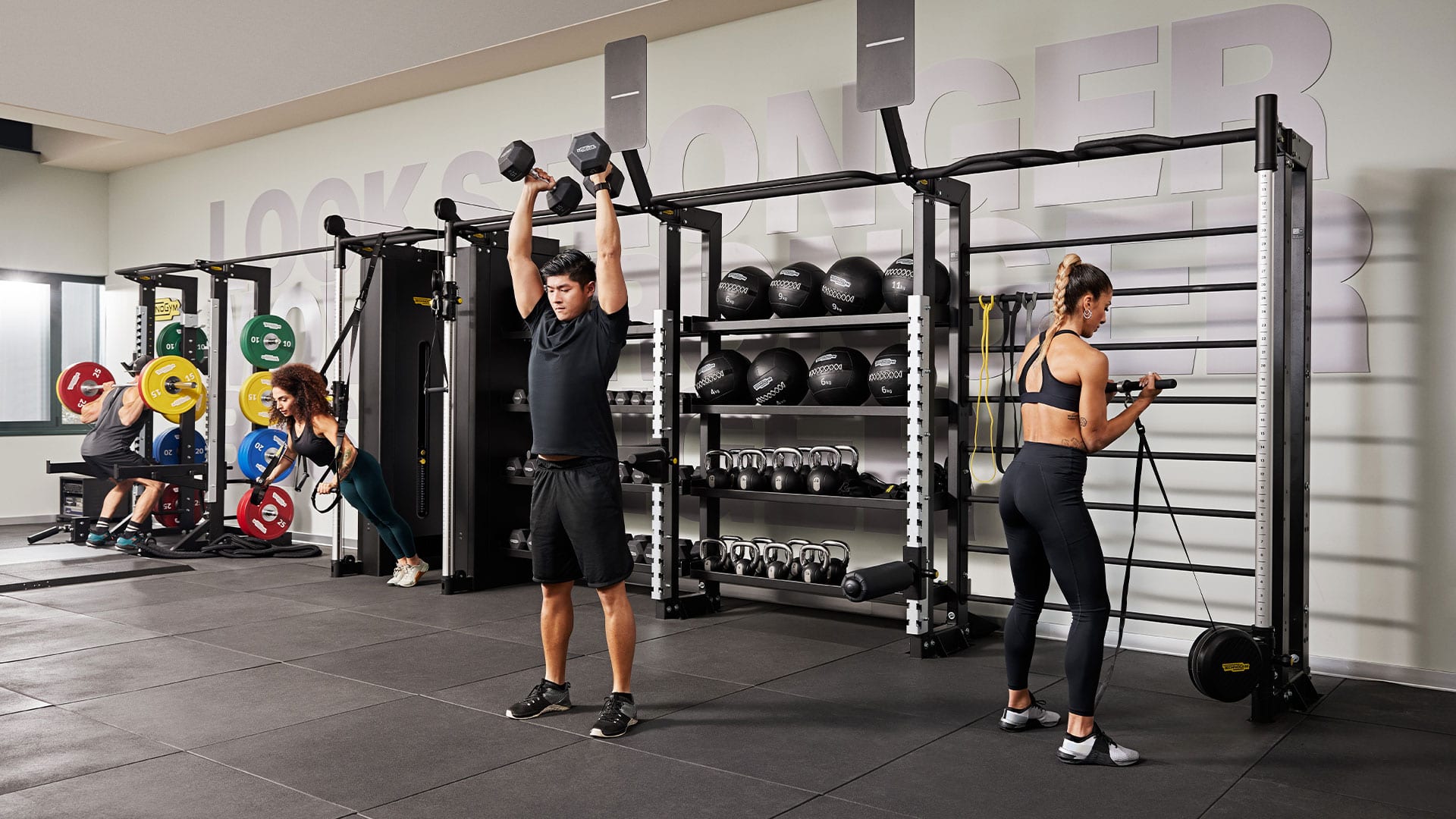 Takket være det modulære designsystem er Wall en pladseffektiv løsning til dynamisk interaktion og personlige træningssessioner. Den er endda kompakt nok til et lille styrkehjørne i et mindre center. Riggen er designet til justerbarhed og skalerbarhed, så alle nemt kan justere stativerne eller nå pull-up stængerne, selv midt i en træning. Brugere kan følge øvelser direkte på den virtuelle station eller Technogym-appen med målrettede rutiner for at motivere dem mod deres mål.