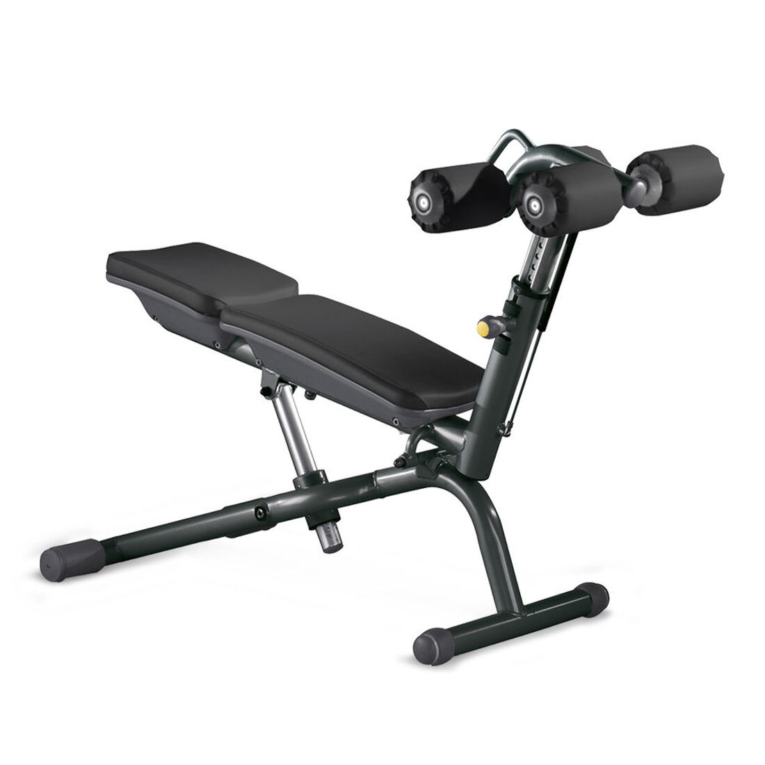 Technogym Crunch Bench tilbyder ni rullejusteringer samt fem ryglænsindstillinger fra –20° til +10°, hvilket gør det muligt at variere sværhedsgrad og bevægeudslag uden at kompromittere kontrol eller stabilisering. Den integrerede adgangshåndtag sikrer stabil ind- og udstigning, og konstruktionen er dimensioneret til gentagen brug i centerdrift, hvor udstyr skal modstå høj daglig belastning. Som ab bench egner den sig til kontrollerede crunch-variationer uden tab af position.