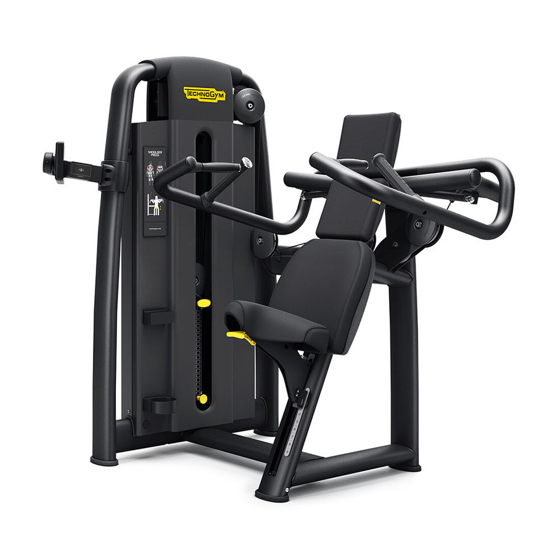 Skulderpressen er ideel til sikker træning af skuldre og arme fra en komfortabel og ergonomisk korrekt siddende position.
