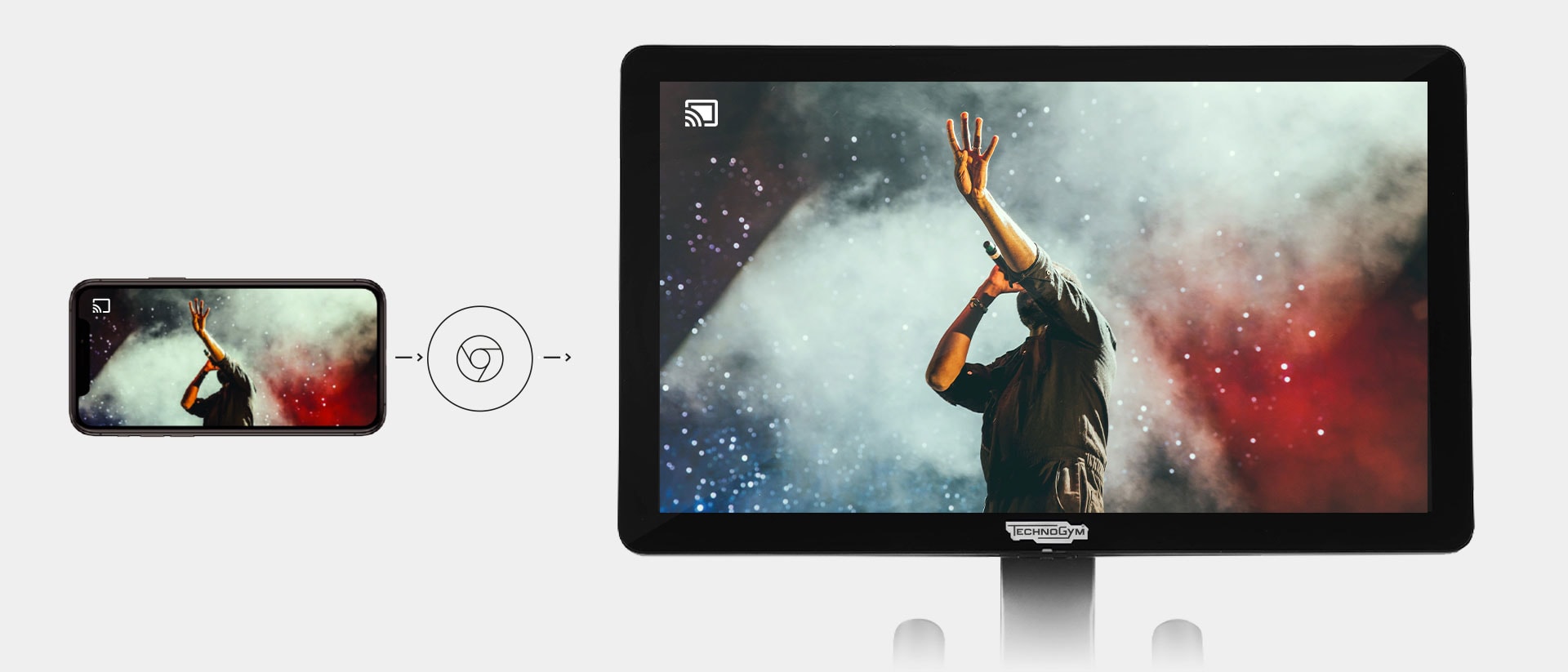 Tilslut din Chromecast, Firestick eller andre kompatible enheder* og stream hundredvis af apps fra din enhed til din Technogym-cykel.
