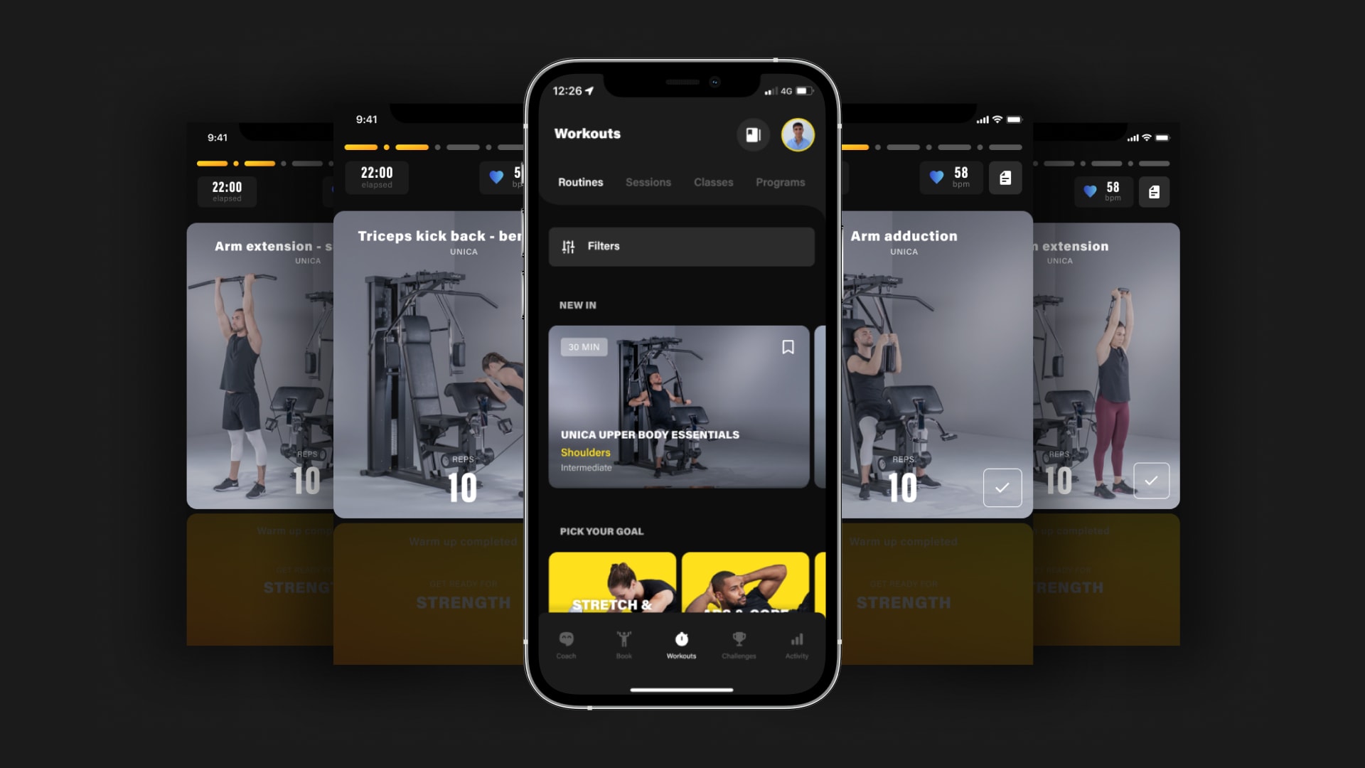 Med Unica får du adgang til Technogyms LIVE-træningsunivers, hvor du kan følge guidede øvelser og træningsprogrammer, direkte fra skærmen eller via app, så du altid er motiveret og godt instrueret.